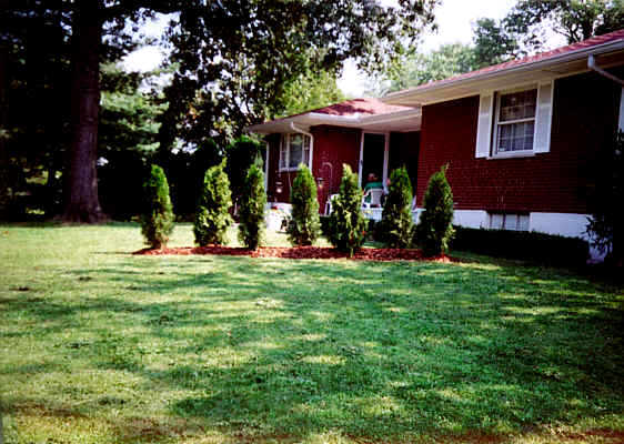 The view from the customers' patio. This planting will close in completely within two to three years and fully mature in 7. All steps were taken to make sure of quick performace.Ammended soil and 3-4" layer of pine mulch will insure maximum root and top development when the plants "flush out" next spring :) |