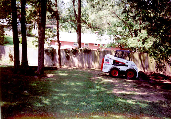 Railroad ties were chosen as a quick and econmical ($1/foot) edge for these raised beds in the backyard. 20 yards of ammended topsoil were used to fill the beds and a 3" layer of pine mulch laid on top.